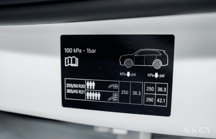 当然,这里兔兔也不是建议新能源汽车胎压越高越好,过高的胎压也会带来一些弊端,例如降低轮胎的缓冲能力,增强颠簸感,影响乘坐舒适性,并加剧轮胎中央部分的磨损,缩短使用寿命。不同车型和车辆的轮胎压力可能略有差异,具体数值可以在燃油箱盖、驾驶室门侧面或用户手册中查找到。